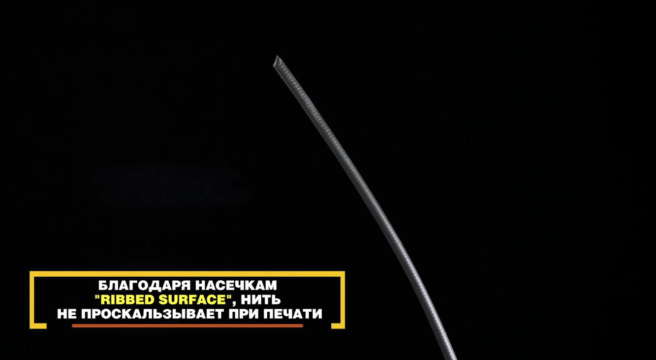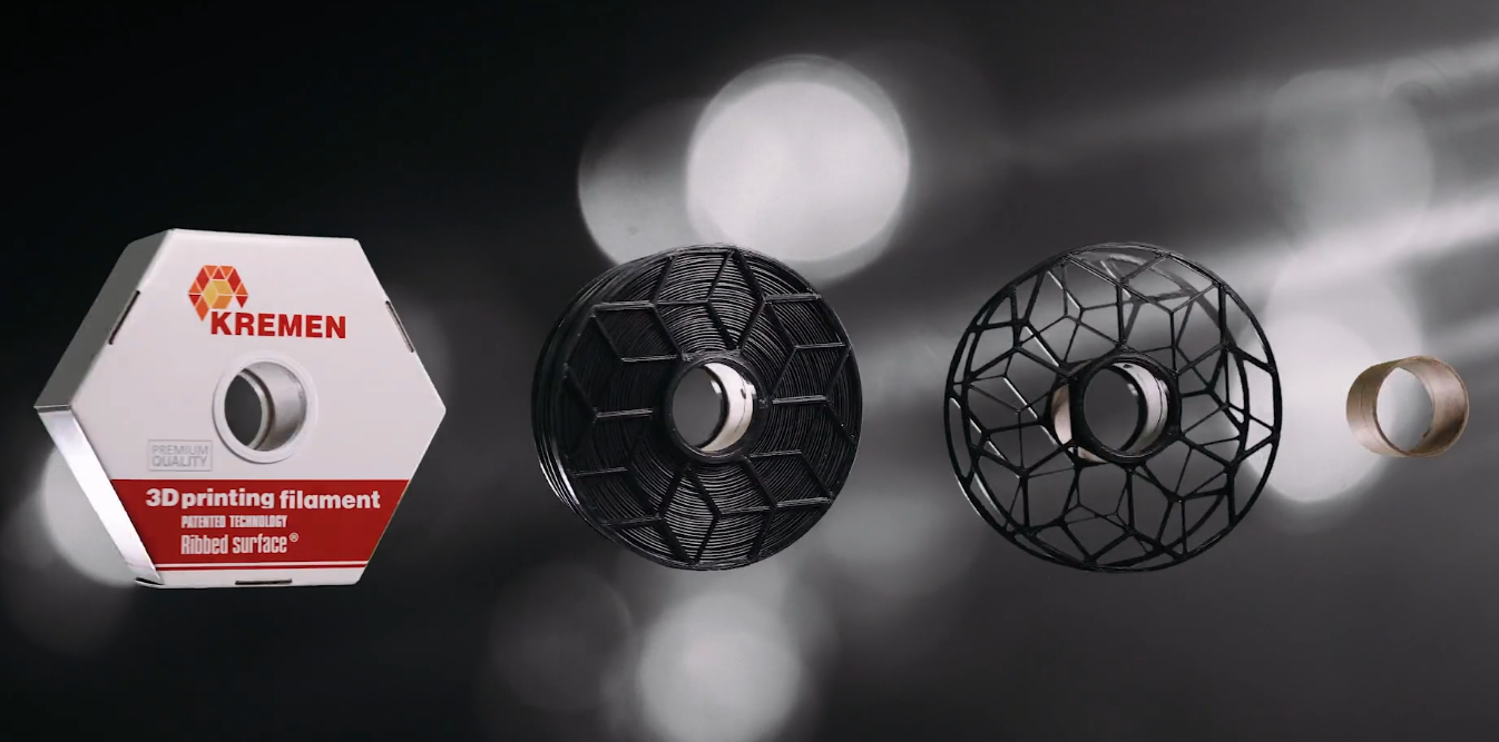 KREMEN Раздаточная упаковка картриджного типа. Катушка и коробка — единое целое. Бобина свободно прокручивается внутри. Край прутка выведен наружу и зафиксирован в дополнительном люверсе. Вам не нужно держать конец, а печатать можно просто поставив коробку рядом с принтером. Ребристый пруток. По всей длине филамента расположены поперечные равноудалённые друг от друга насечки, которые делают его поверхность ребристой. Такая форма нити даёт надёжное сцепление с механизмом протяжки 3D принтера — пластик не проскальзывает и обеспечивает печать без пропусков. Диаметр нити - 1,75 мм. Упаковка "на горячую". Наш филамент не нужно сушить и очищать. Печатать можно сразу после вскрытия полимерной термоусадочной плёнки, в которую мы его дополнительно упаковываем. Печатайте без брака, пропусков, зависаний и перехлёстов с пластиком от KREMEN. В наличии филамент следующих видов: ABS, PETG, PLA